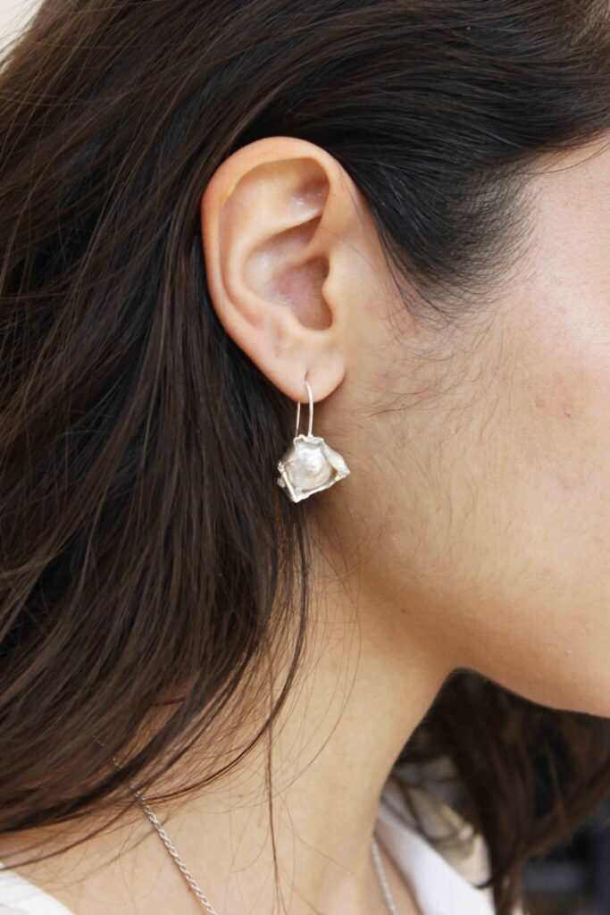£125.00The Pearl Totem Earrings are handcrafted with recycled silver. They combine two baroque fresh water pearls, forming a totem scheme. The top white…