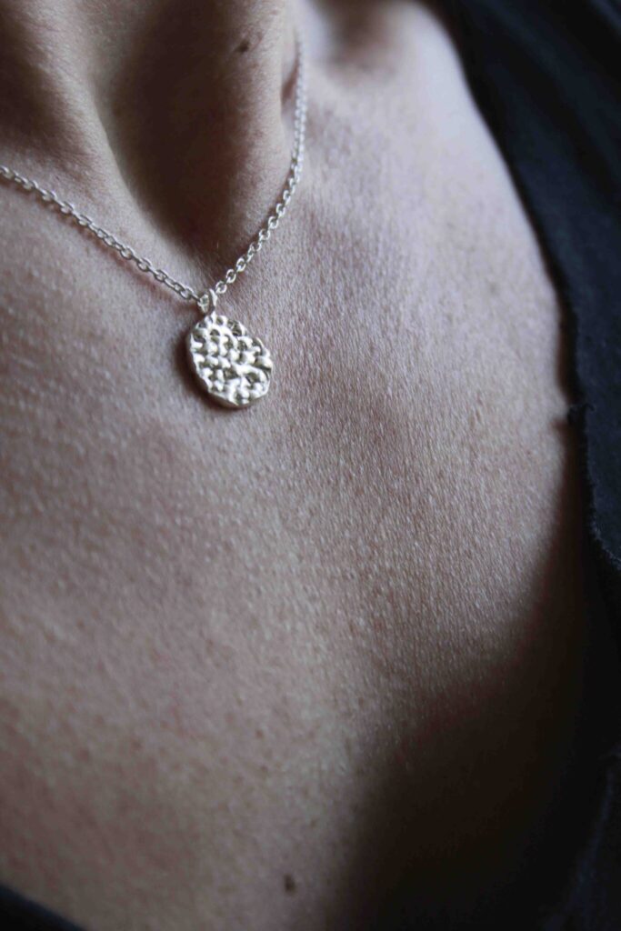 The Flakes Necklace is handcrafted from eco silver. Is an everyday dainty necklace with an impressive texture, which strung on a 44cm chain.…