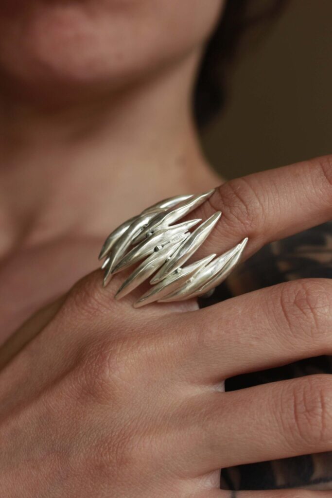 £345.00The throne silver ring is part from Enyo collection. A statement ring made from 12 silver empty pieces. Each piece is hammered by…