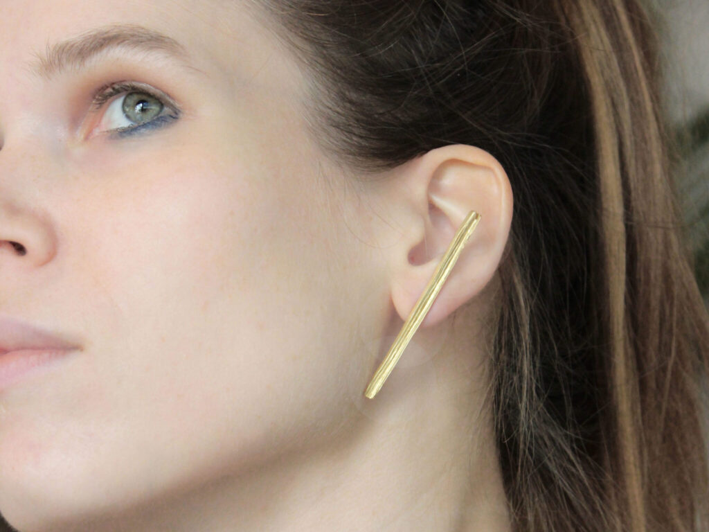 £165.00Long Bar Earrings Made from eco silver sheets soldered together to create this unique texture of layers. Length 6cm The earrings are part…