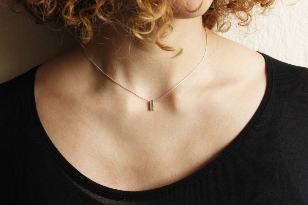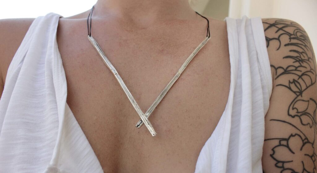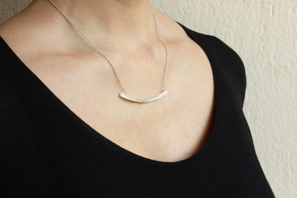 £110.00Bar Necklace Made from eco silver sheets soldered together to create this unique texture of layers. The necklace is part of project_x, a…