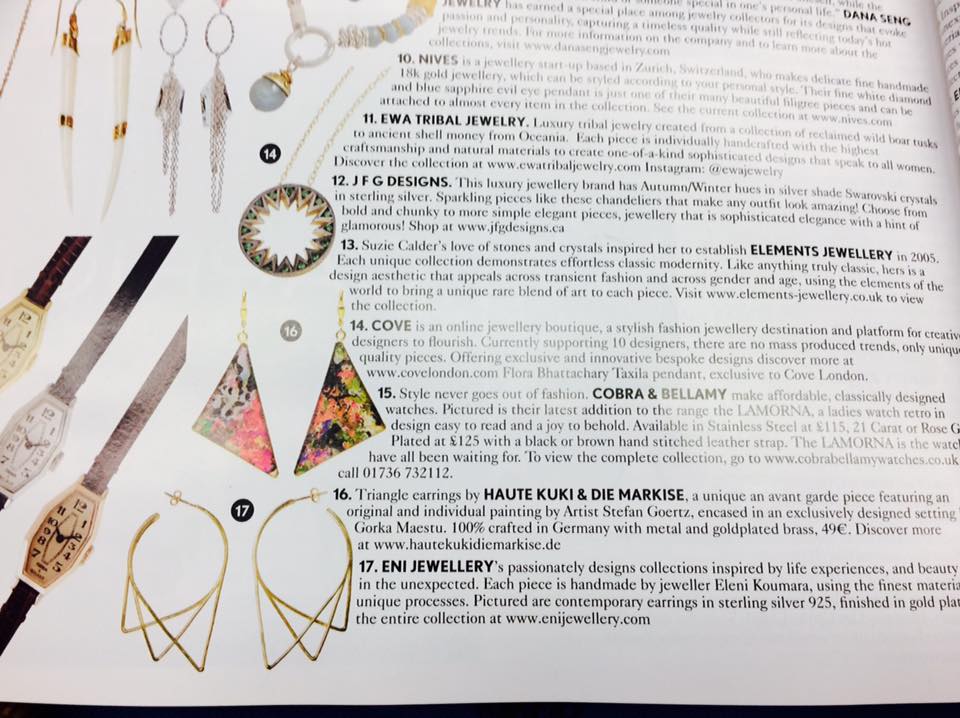 The British VOGUE December issue is out, and I am so happy to see the gold plated Urbs Earrings be featured!