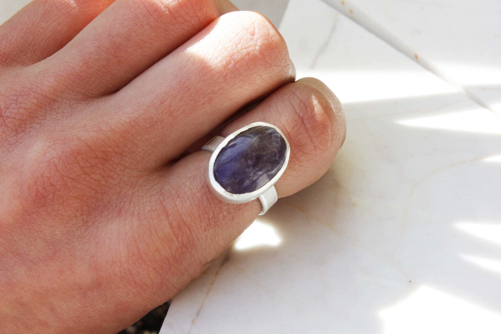 This one of a kind amethyst ring is totally handmade and adjustable. Therefore is a perfect choice if you are not sure about the size.
