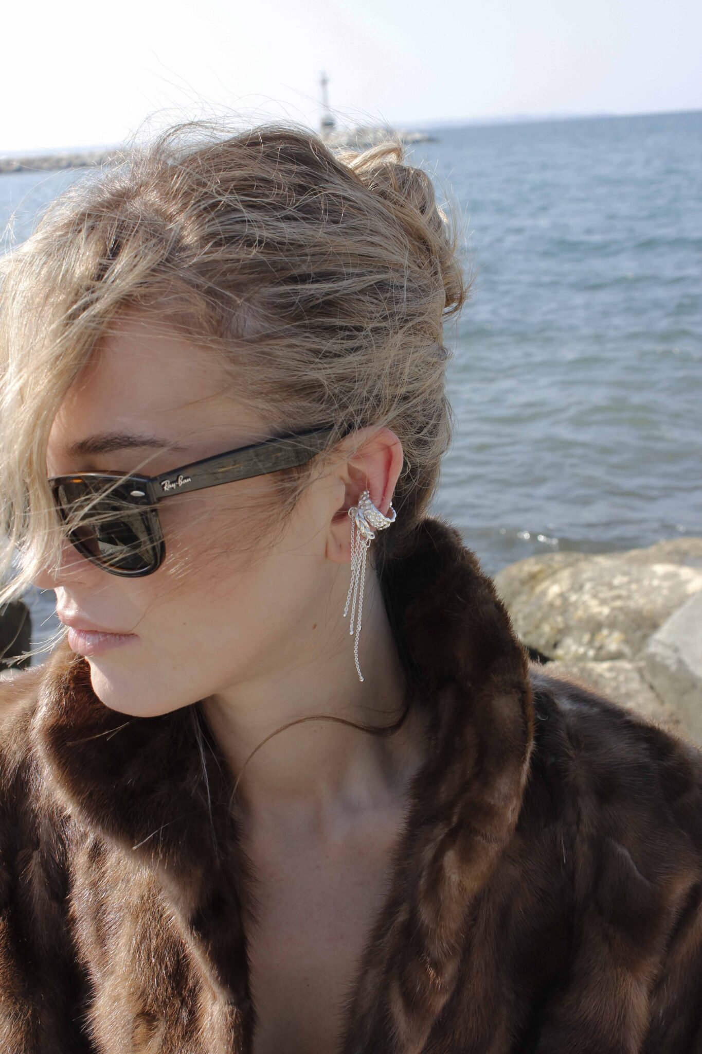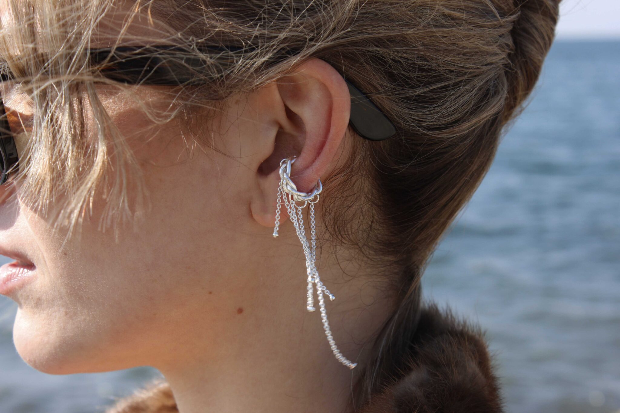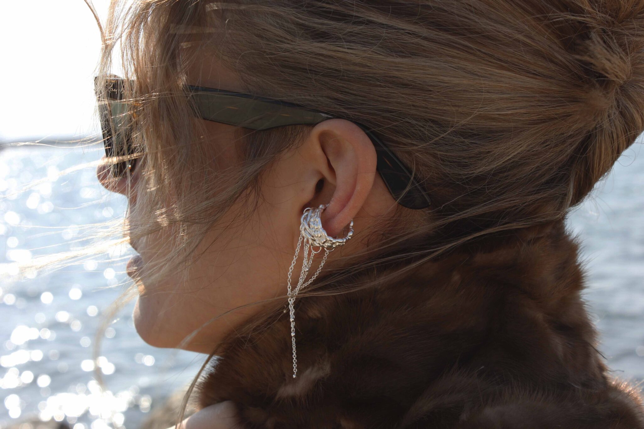 The Aurora Chain Ear Cuff combines sculptural detail with fluid movement.