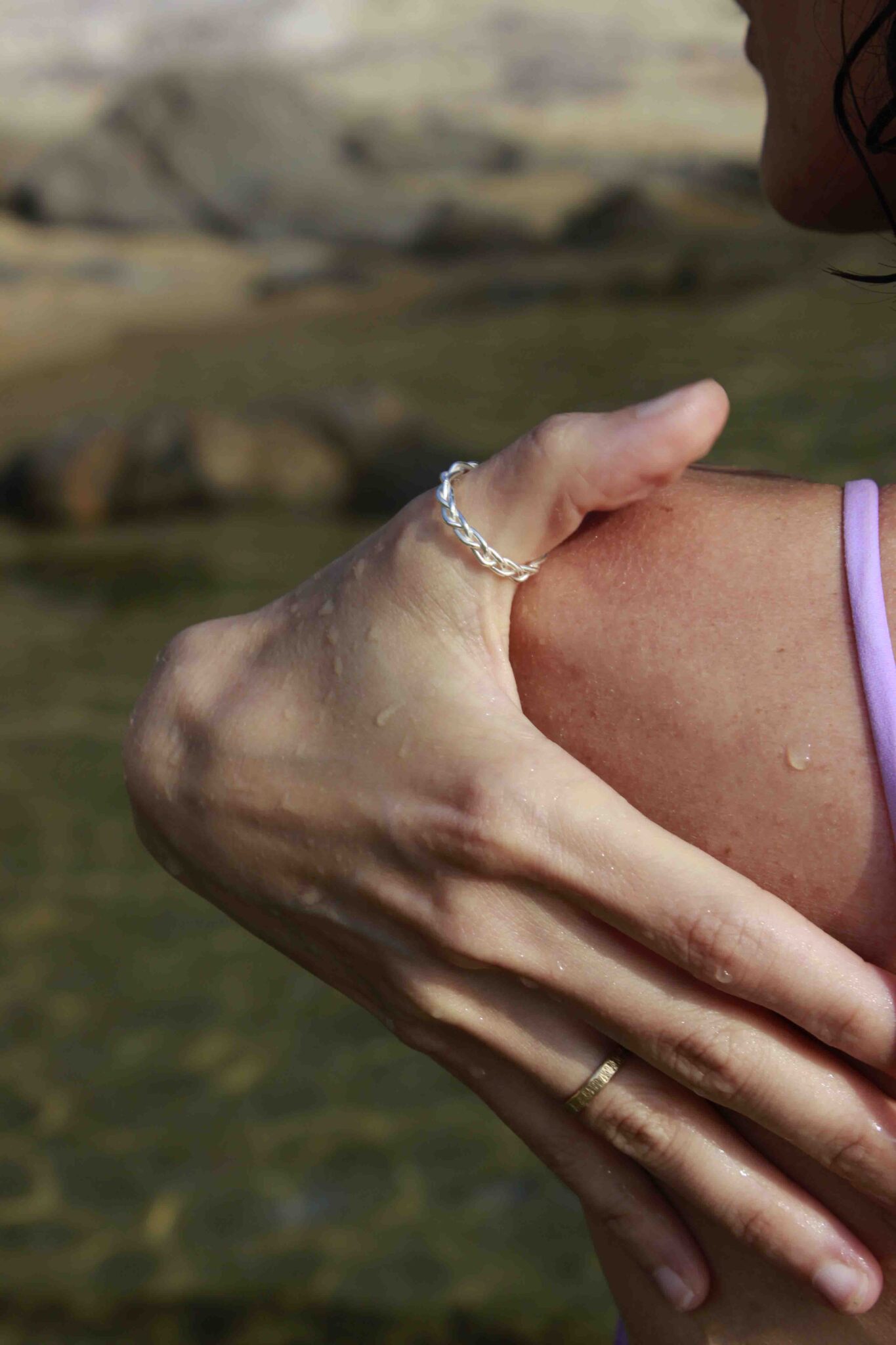 Braided Ring: A delicate, minimal ring, made from three silver wires braided together.