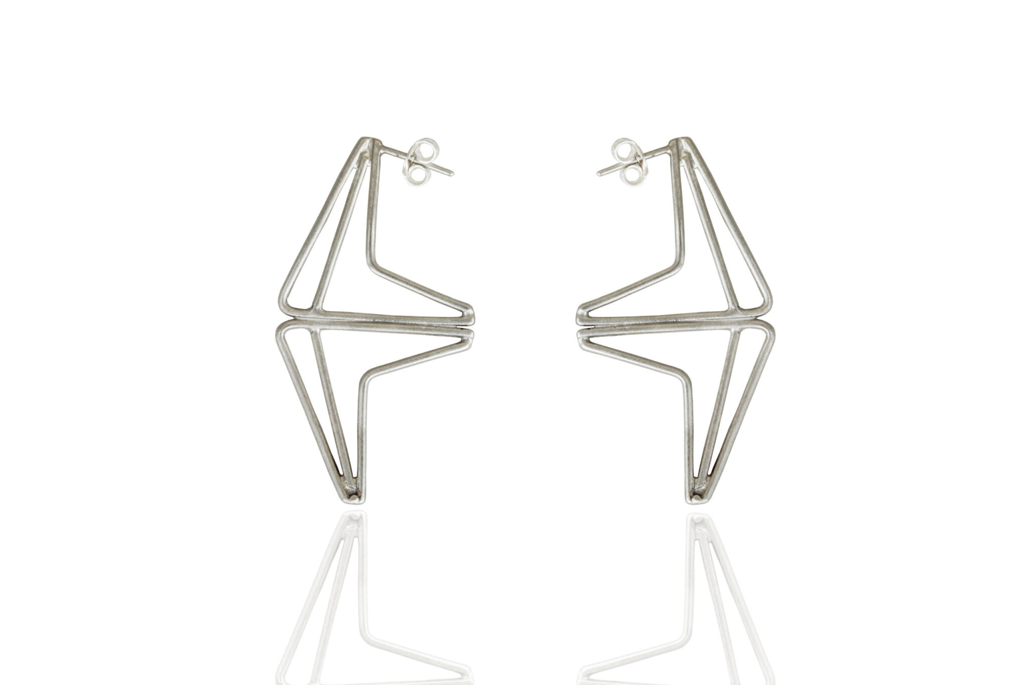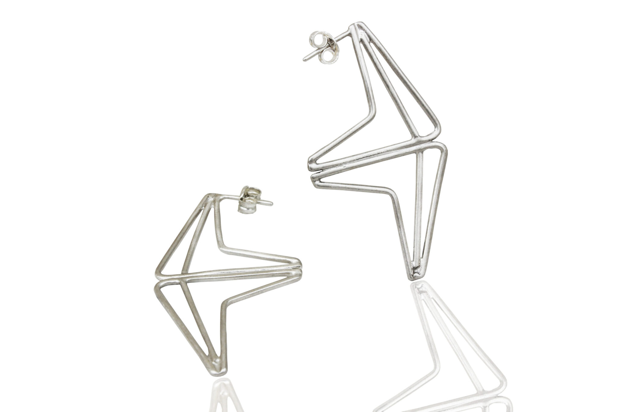 Double festival silver earrings – Unique statement triangle side way’s earrings.