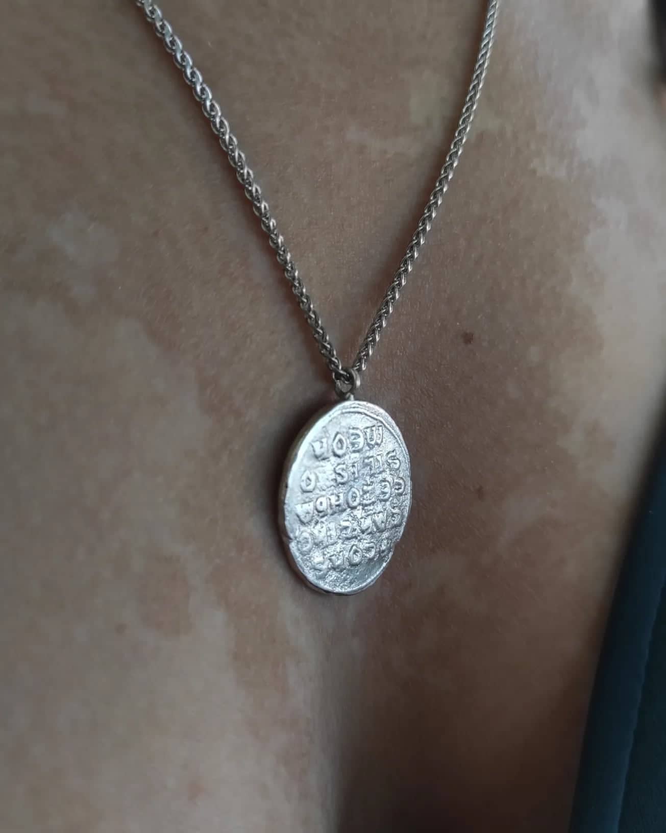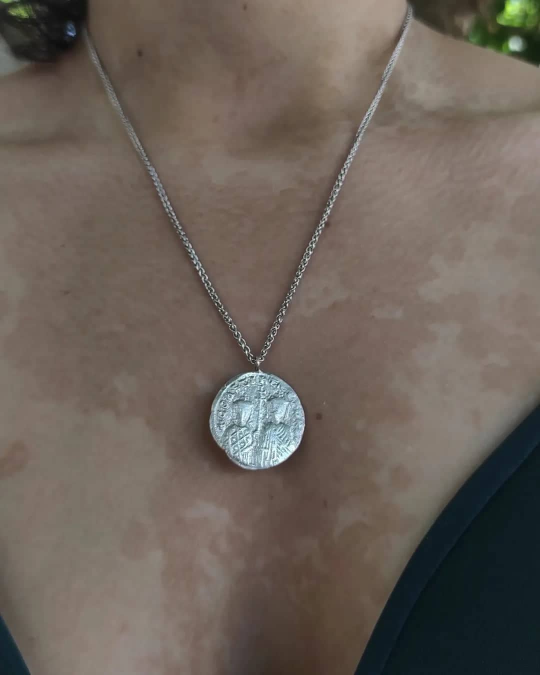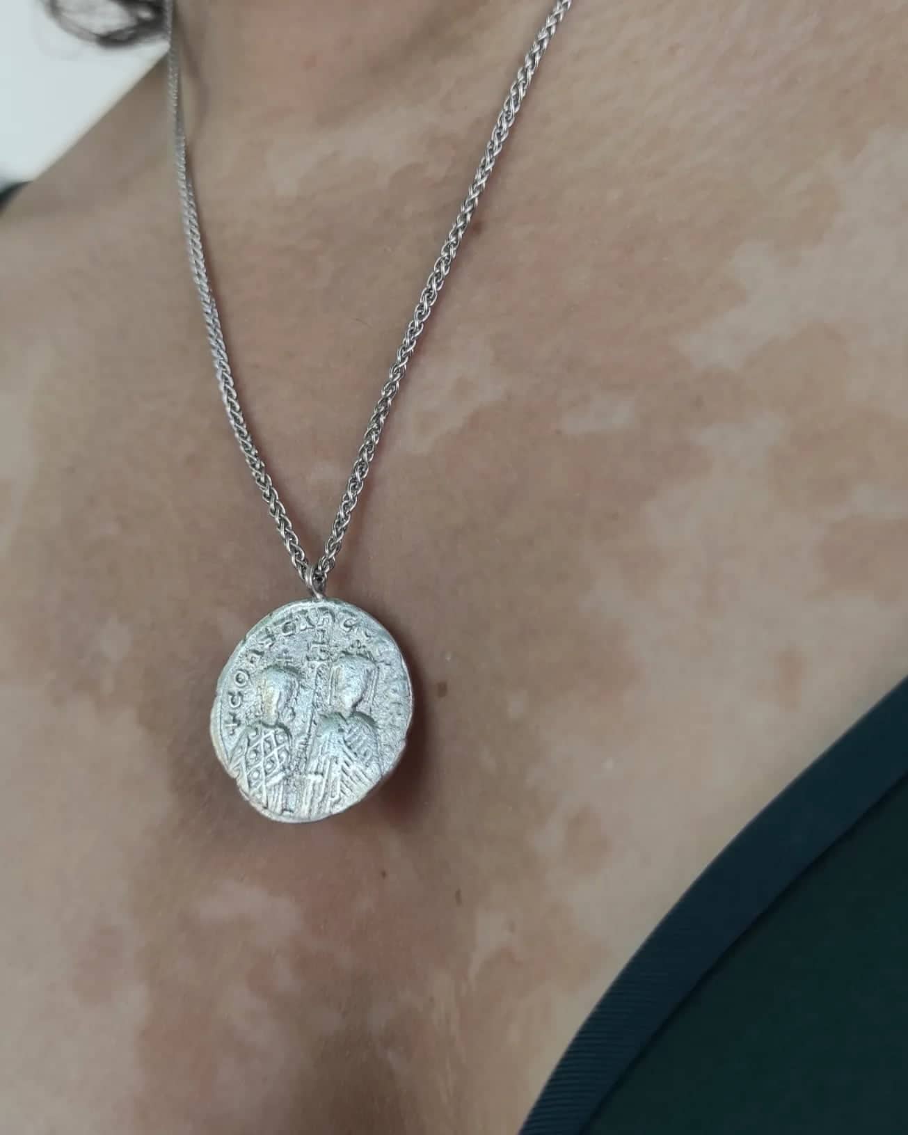 This necklace is a modern take on the Konstantinato, a style of religious jewelry that has been popular in Greece since the Byzantine era.