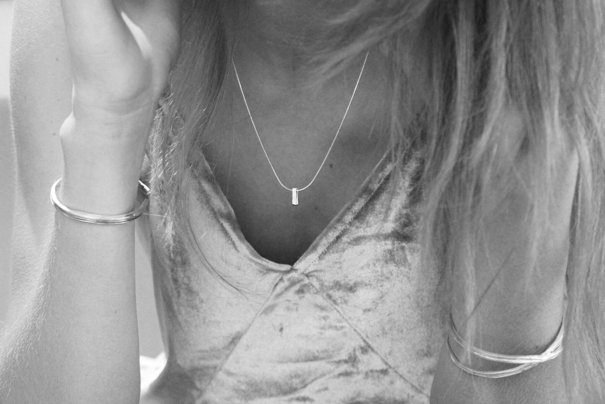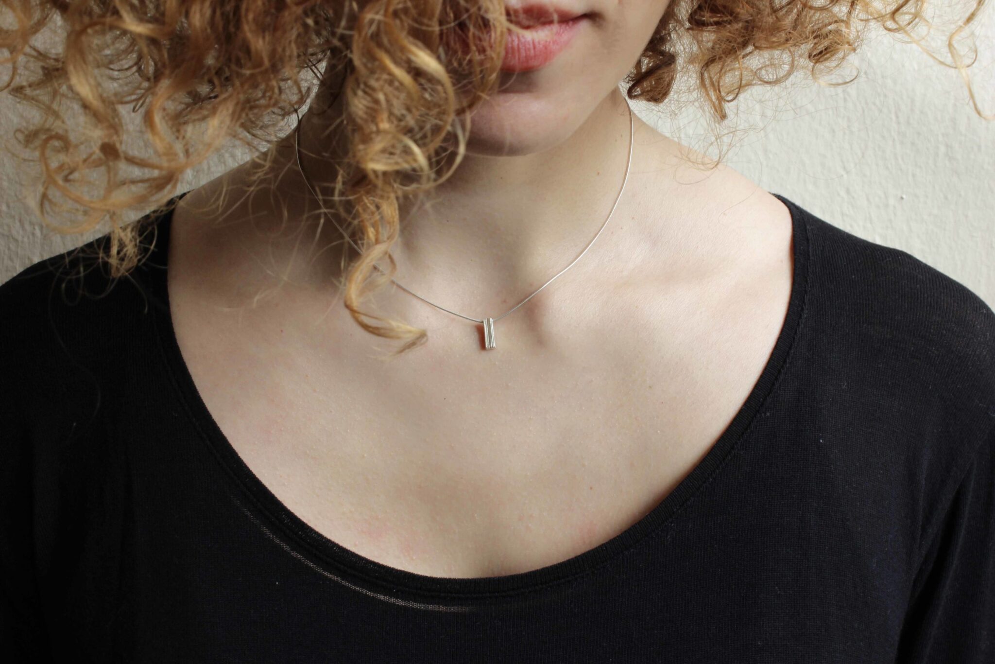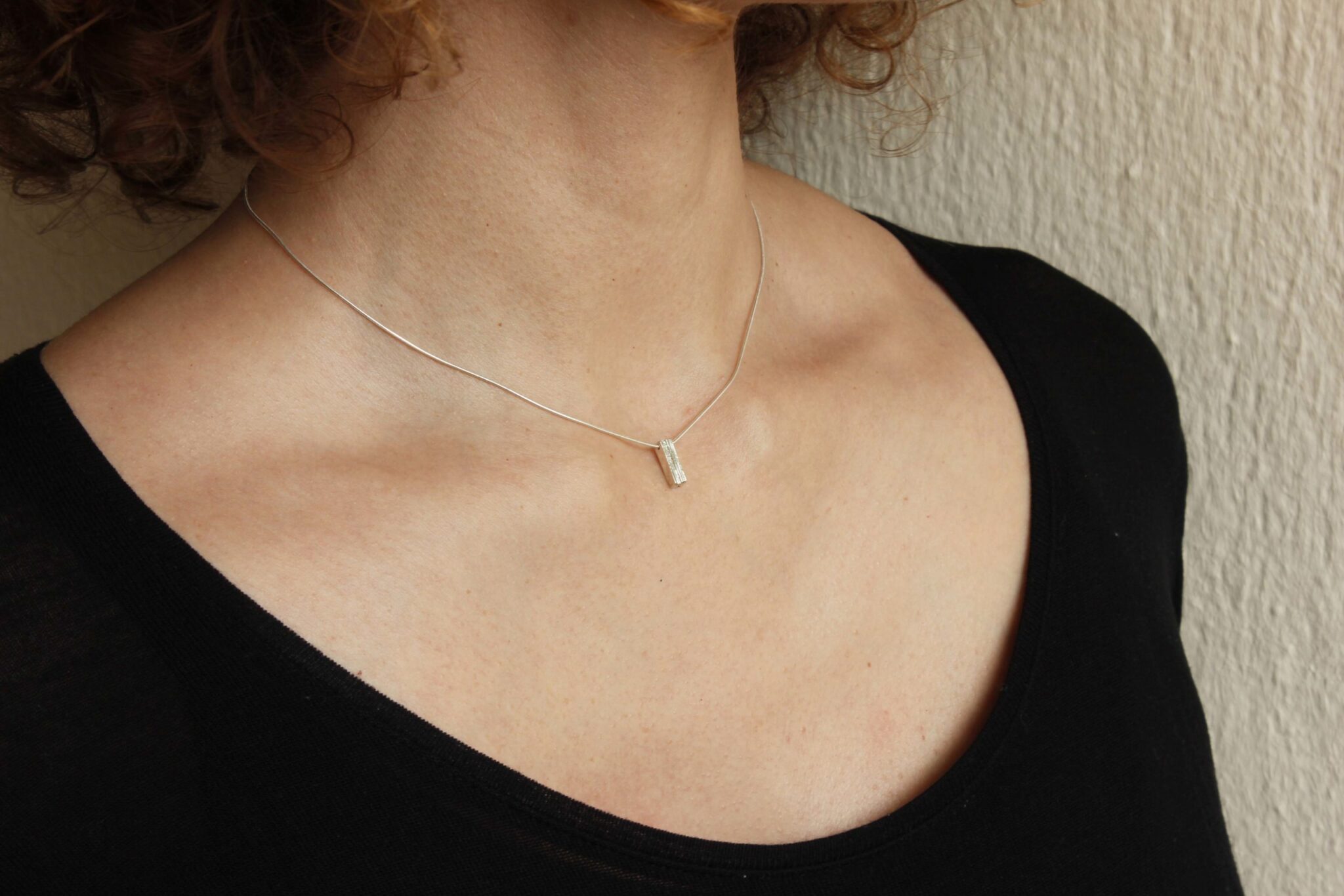 Minimal eco silver bar necklace with a sculptural surface, is perfect to give an extra detail to your outfit!