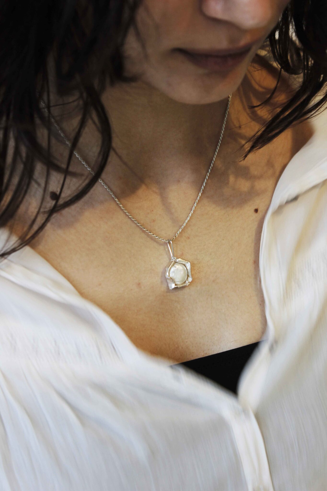 Made from recycled silver, the metal creates folds and organic creases, mimicking the natural form of shells.