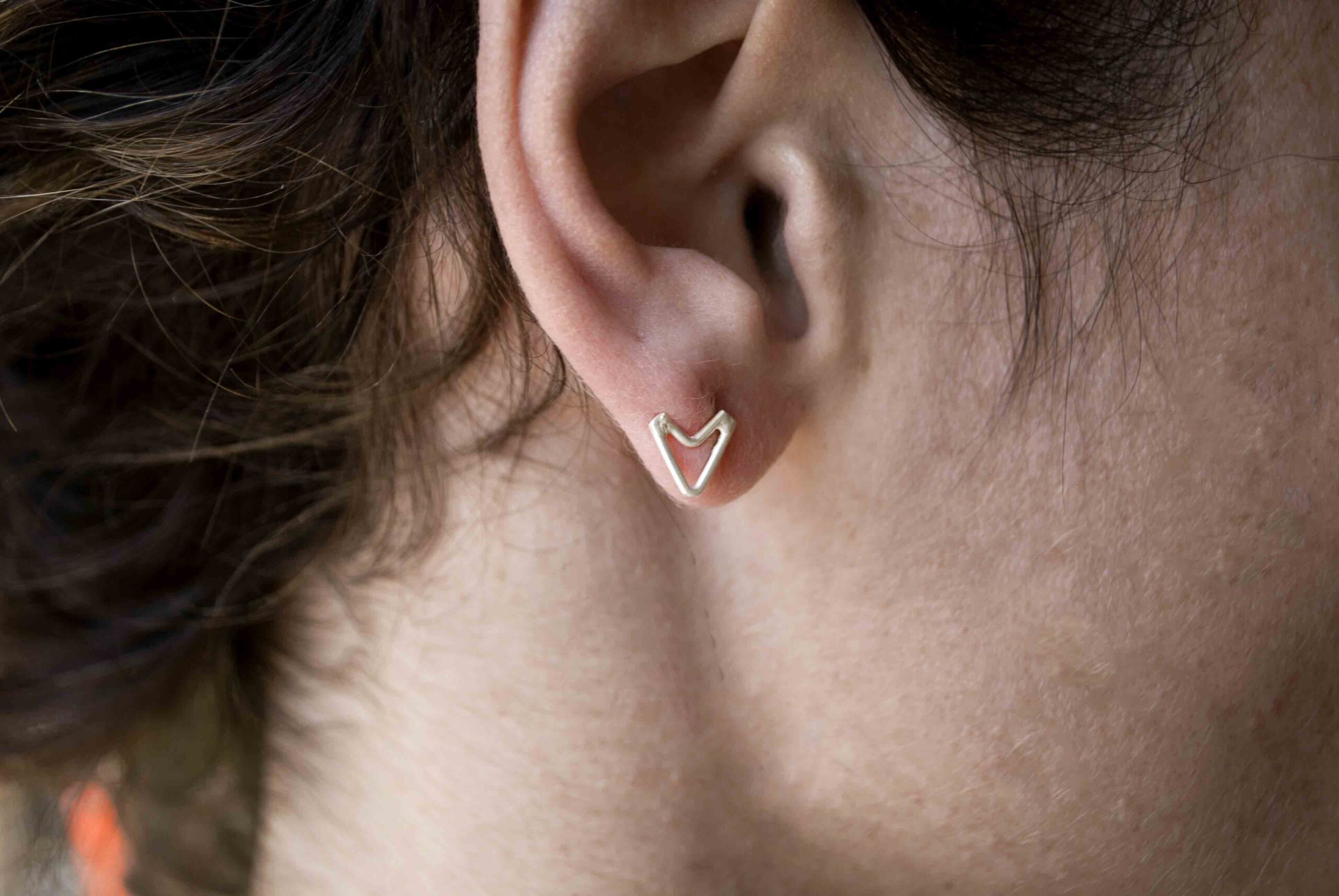 These tiny geometric V earrings can add a distinctive detail to your style!