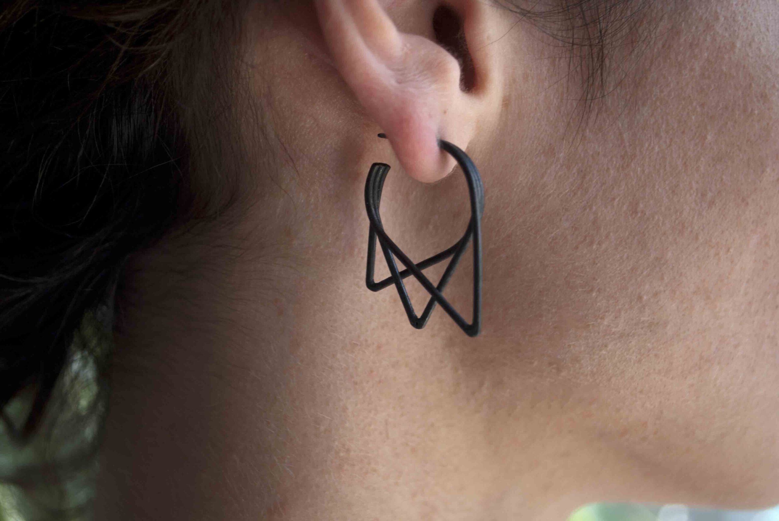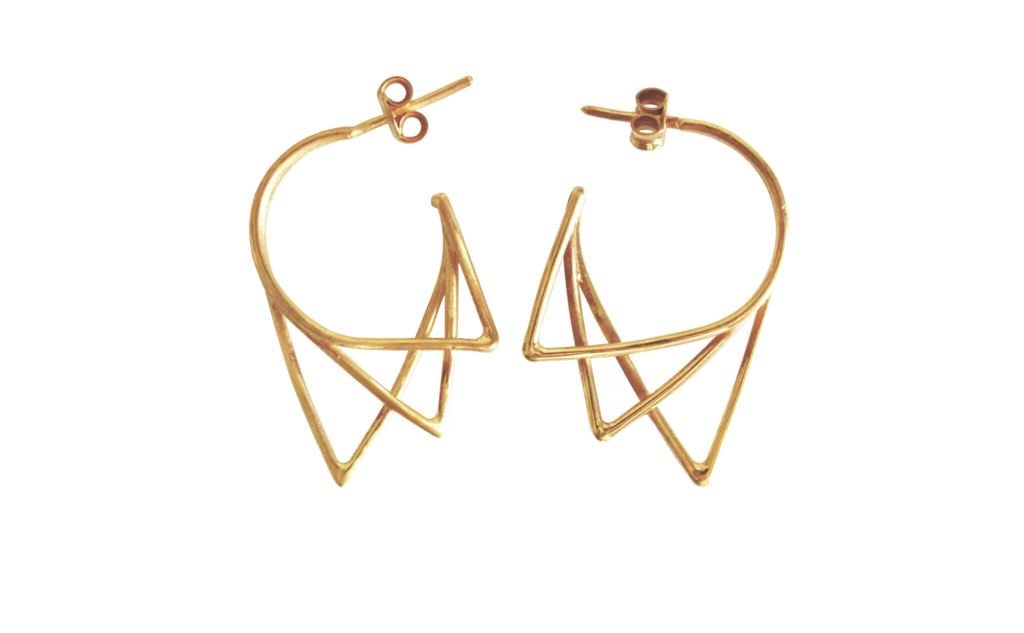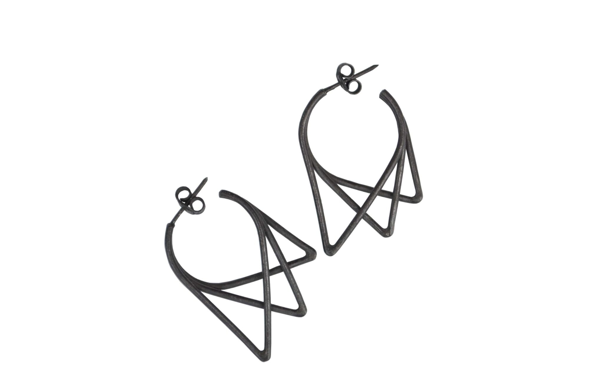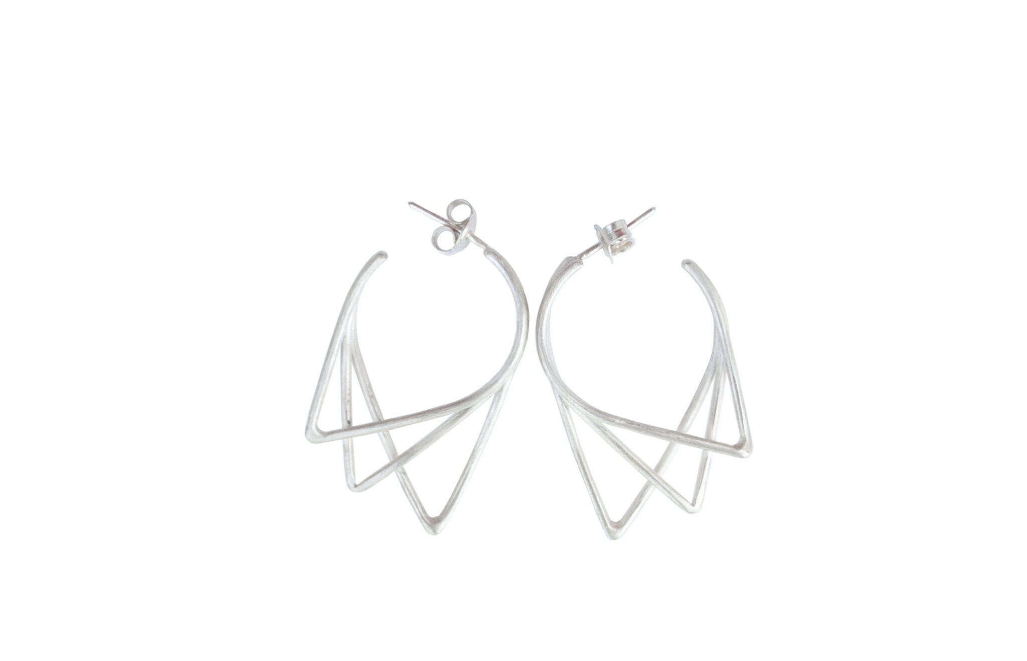 These earrings are made of sterling silver wire which has been formed to create three triangles. The design ends up minimalist, simple, but still elegant.