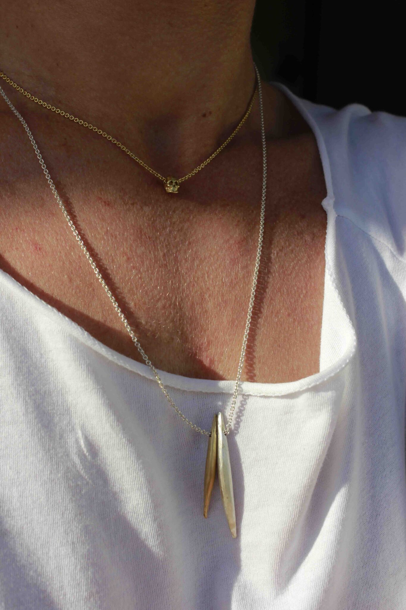 Wings necklace in silver and gold plated , with a 48cm silver chain